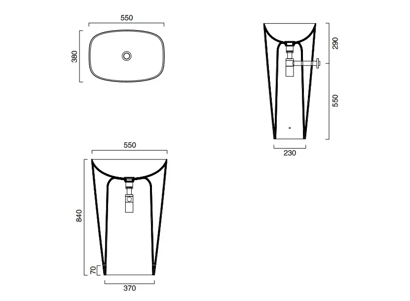 Catalano Green Раковина напольная 55x38x85h см, без перелива, покр. Cataglaze, цвет: черный матовый 0428551022