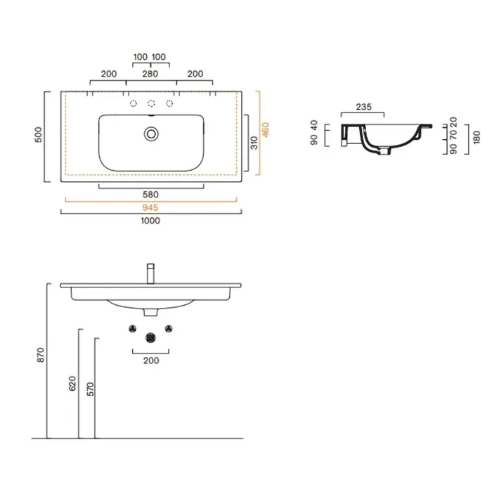 Catalano Italy Раковина 100х50см, без отв., цвет: белый глянцевый