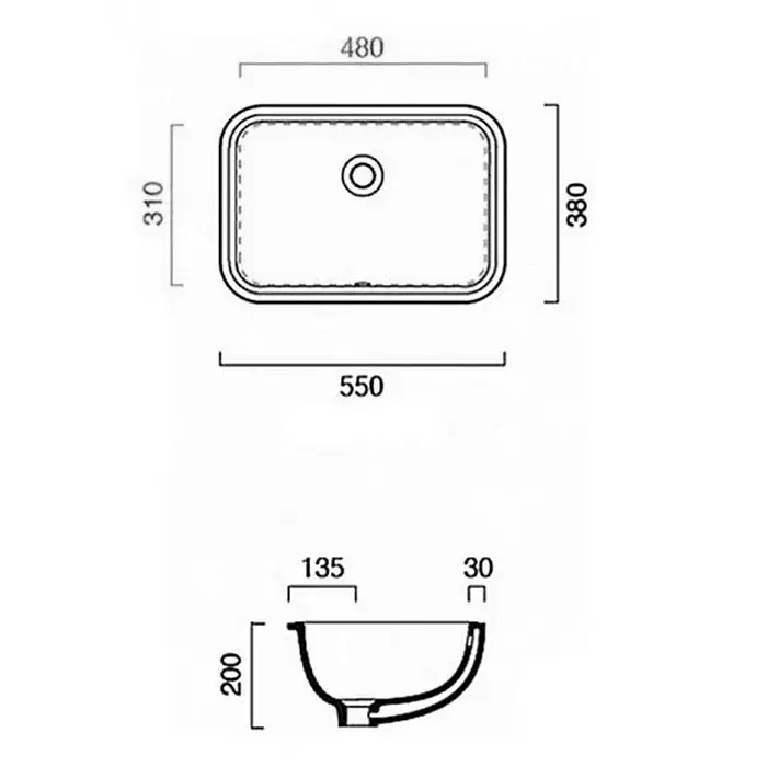 Catalano Italy Раковина встраиваемая снизу 55x38 см, с переливом, покр Cataglaze, цвет: белый глянц. 0727550001