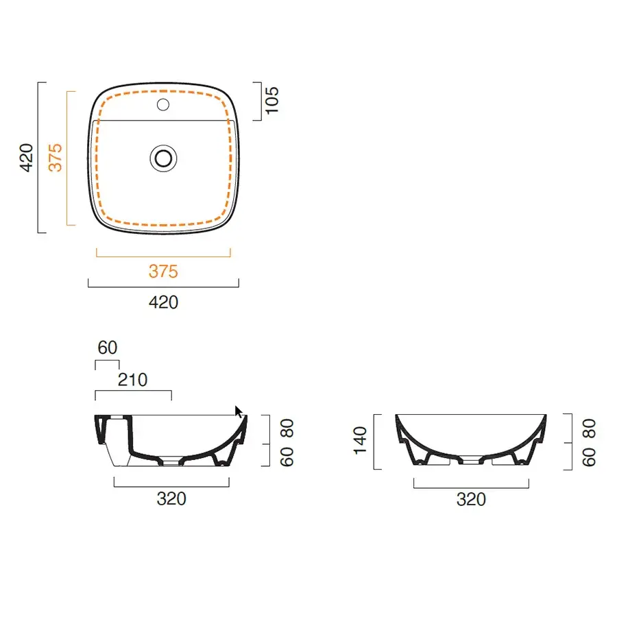 Catalano Italy Раковина 57х42см., встраиваемая под столешницу с переливом, цвет: белый глянцевый