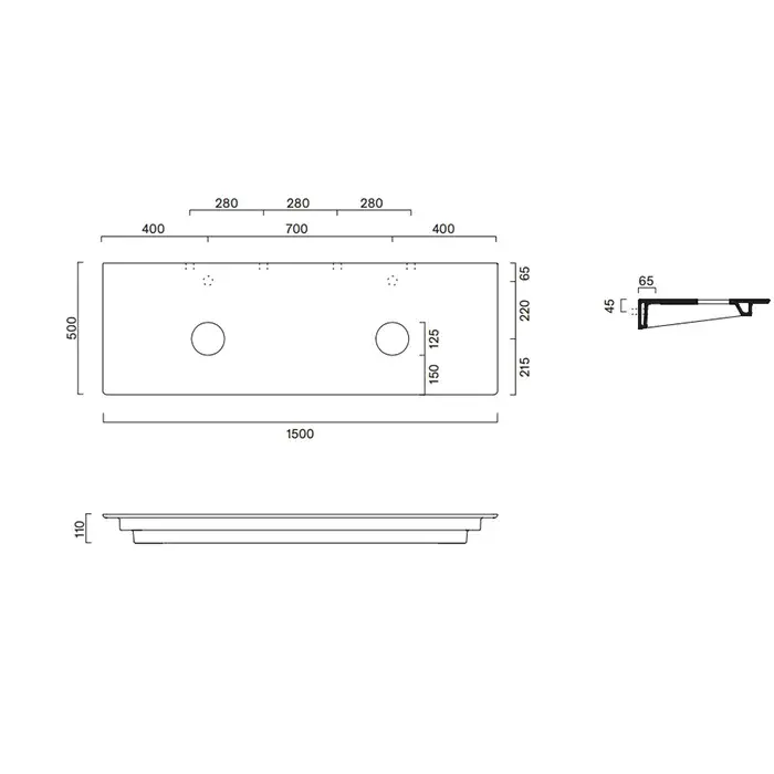 Catalano Столешница керамическая 150x50см, под две раковины, цвет: белый матовый