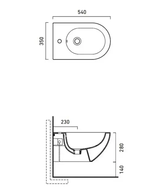 Catalano Sfera Биде подвесное 35x54 см, 1 отв., с переливом, покр. Cataglaze, цвет: белый глянцевый 1BSF5400