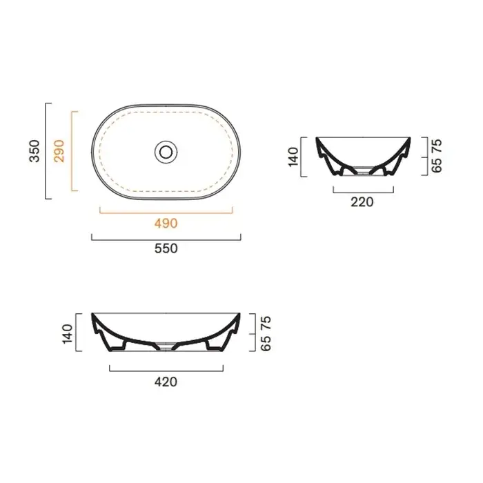 Catalano Sfera Раковина чаша 55x35x14h см, без перелива, покрытие Cataglaze, цвет: черный матовый 0524550022