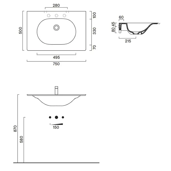Catalano Sfera 75 Столешница с интегрированной раковиной, цвет: белый глянцевый