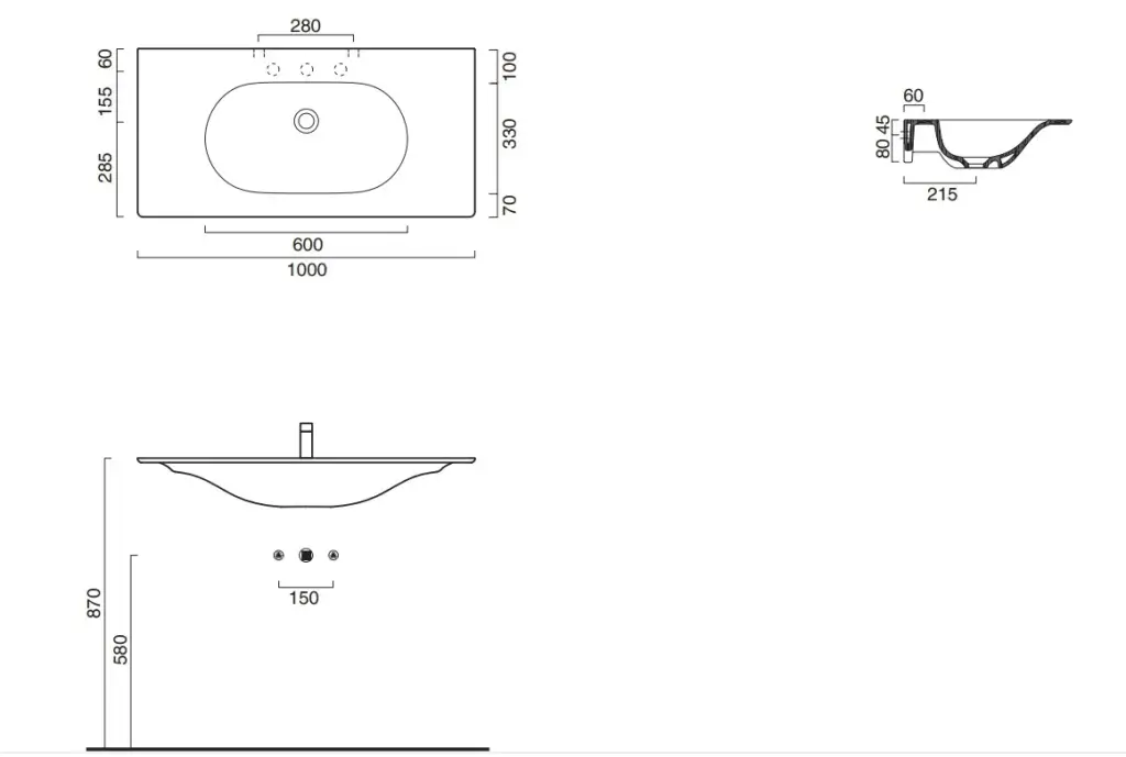 Catalano Sfera 100 Столешница с интегрированной раковиной, цвет: белый глянцевый