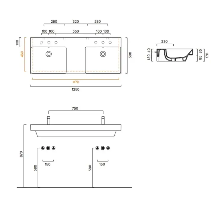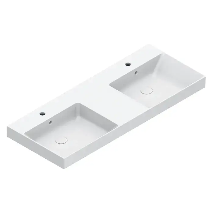Catalano Zero Раковина двойная 125х50 см, 2 отверстия под смеситель, перелив, цвет: белый глянцевый 0121272001