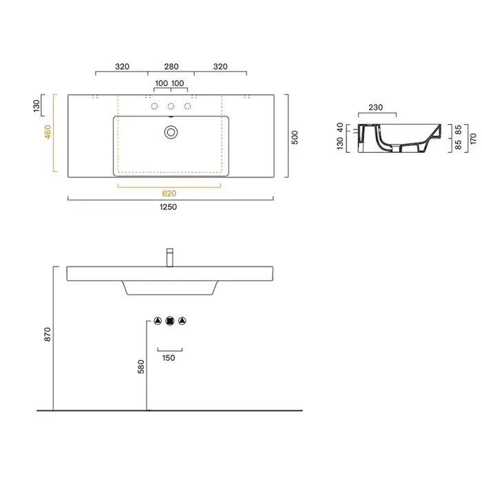 Catalano Zero Раковина подвесная 125х50 см, 1 отвер. под смеситель, перелив, цвет: белый глянцевый 0121261001