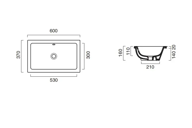 Catalano Zero Раковина встраиваемая снизу 60x37 см, с переливом, покр. Cataglaze, цвет: белый глянц. 0124610001