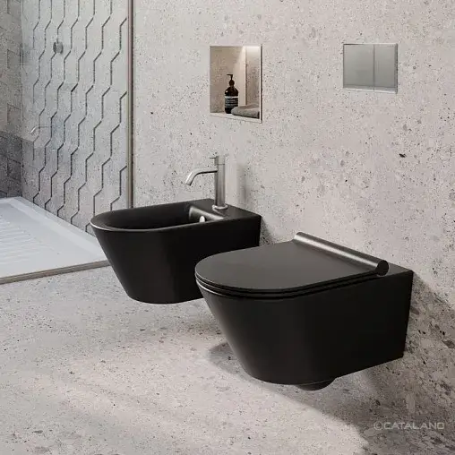 Catalano Zero Унитаз подвесной безободковый 35x55 см, смыв торнадо, Twinglaze, цвет: черный матовый 0111550022