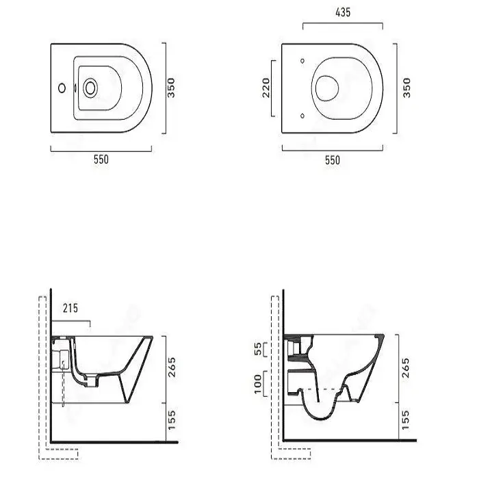 Catalano Zero Биде подвесное 35x55 см, 1 отв, с переливом, покрытие Cataglaze, цвет: белый глянцевый 0118551001