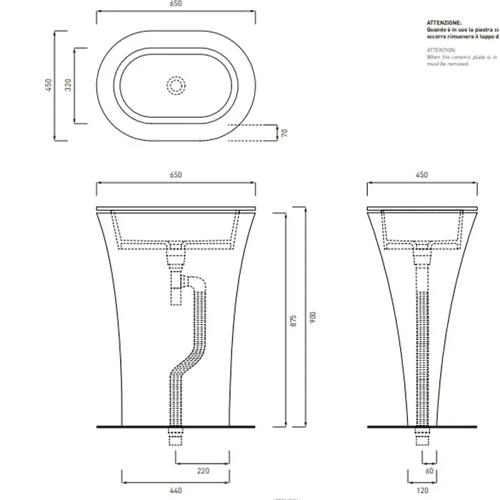 Cielo Amedeo Ovale Накладка керамическая на донный клапан, 30х50 см, цвет: глянцевый белый AMPILO