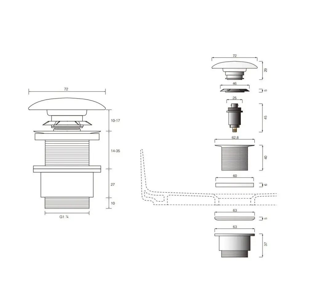 Cielo Донный клапан универсальный click-clack, с керамической крышкой, цвет: хром/белый матовый PIL01.TL