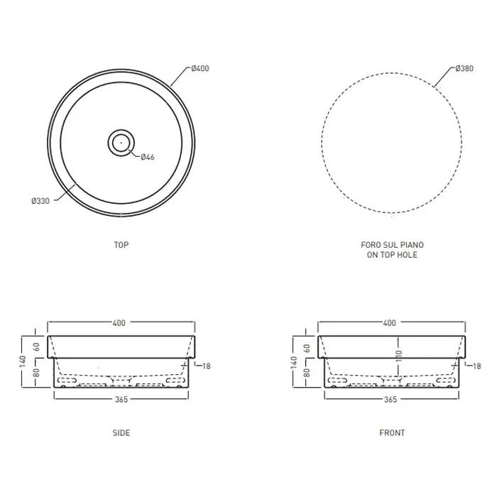 Cielo Enjoy Раковина полувстроенная 40х40хh14 см, круглая, цвет: глянцевый белый EJLASIT
