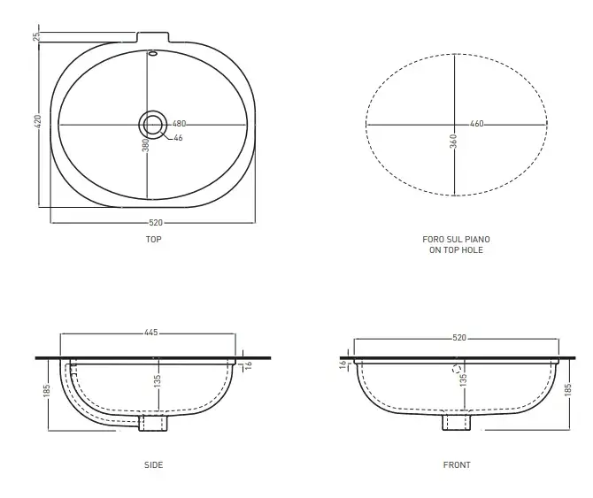 Cielo Enjoy Раковина встраиваемая 44,5х52хh18,5 см, овальная, цвет: глянцевый белый EJLASPO