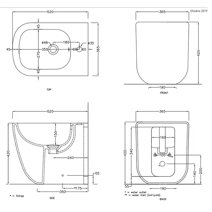 Cielo Era Биде напольное 36,5x52xh42 см, с 1 отв. под смеситель, цвет: белый глянцевый ERBI