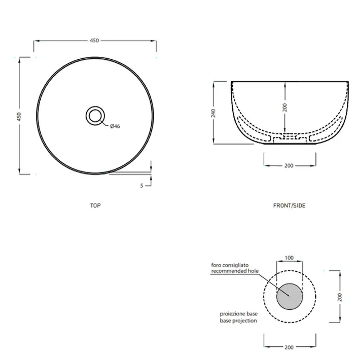 Cielo Era-Eco Раковина накладная 45xh24 см, круглая, цвет: глянцевый белый BAERA