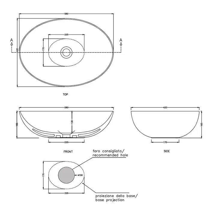 Cielo Era-S Раковина накладная 58x42xh16,5 см, овальная, цвет: белый глянец BAECO58