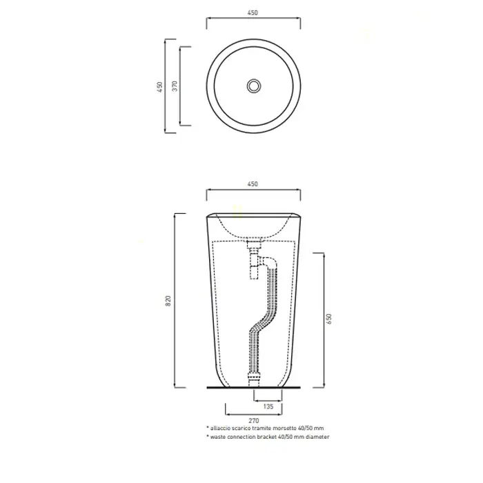 Cielo Fluid Раковина напольная 45х45хh82 см, пристенная установка, цвет: глянцевый белый FLFREEP