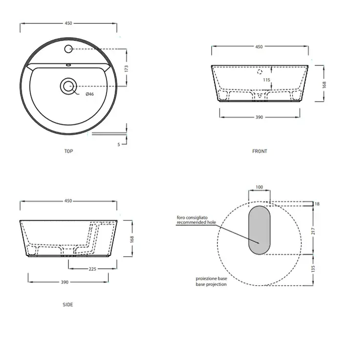 Cielo Handy Раковина накладная 45xh16,8 см, круглая, с 1 отв., цвет: глянцевый белый HALAT45