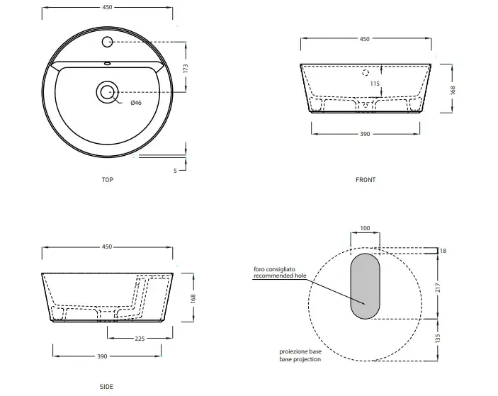 Cielo Handy Раковина накладная 45xh16,8 см, круглая, с 1 отв., цвет: глянцевый белый HALAT45