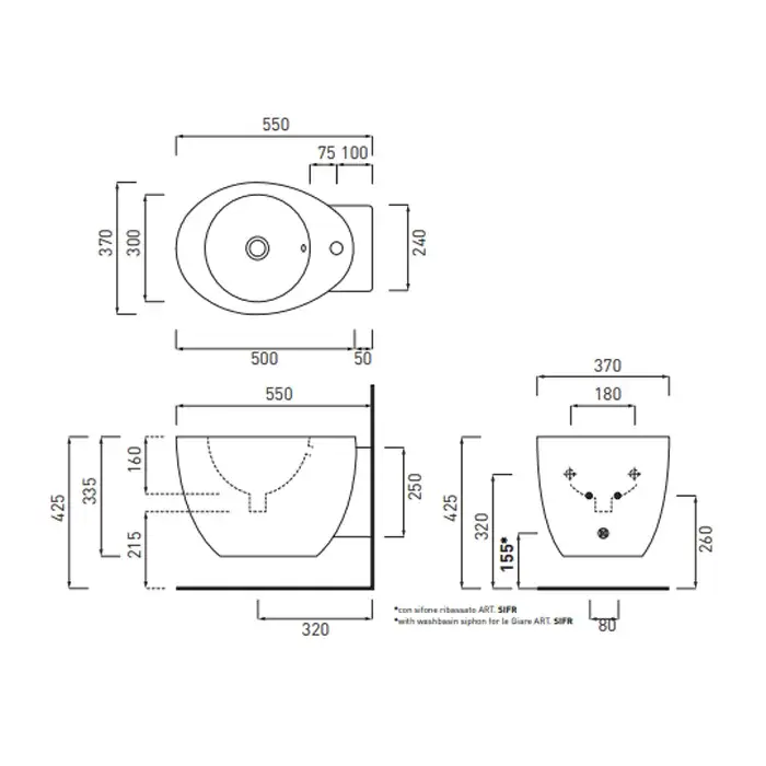 Cielo Le Giare Биде подвесное 37х55хh33,5 см, 1 отв., с креплениями, реверс, цвет: тальк LGBSREVTL