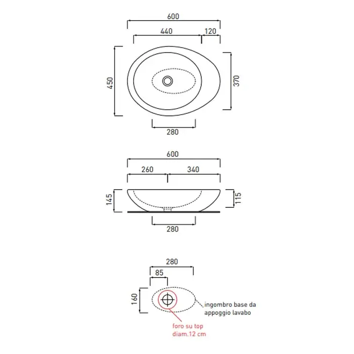 Cielo Le Giare Раковина накладная 60х45х14,5h см без отверстия, цвет: черный LGLA60N