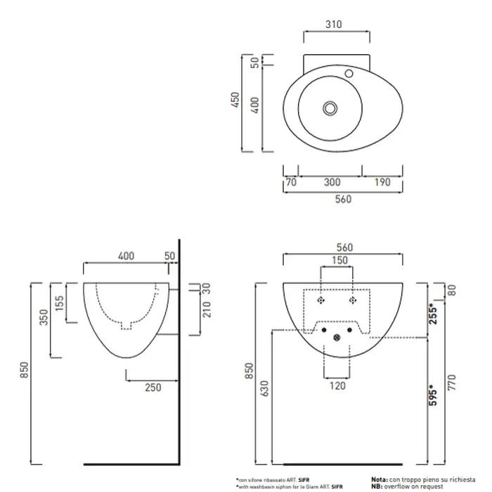 Cielo Le Giare Раковина подвесная 56х45хh35 см, цвет: Lino LGLS56LN