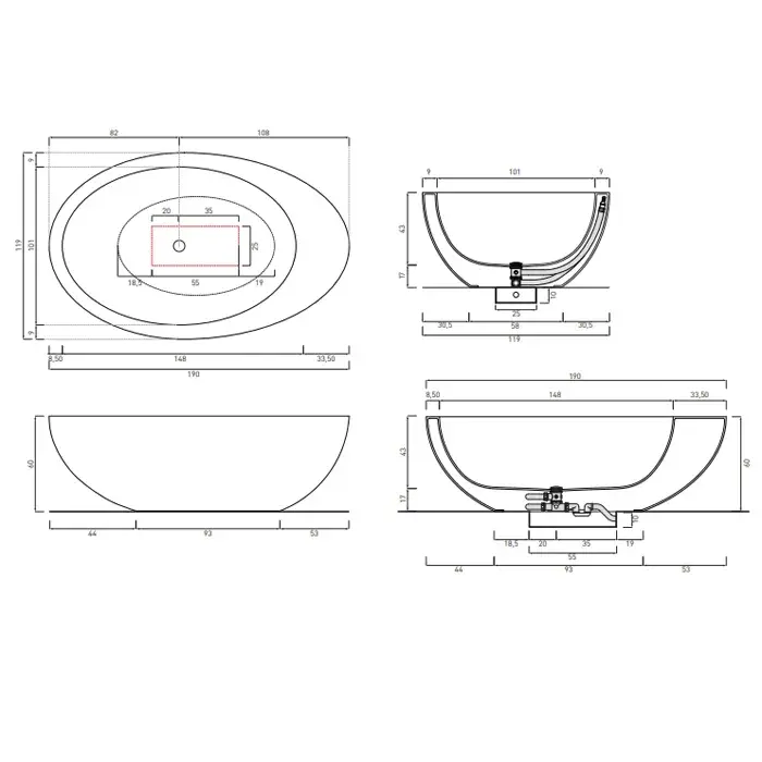Cielo Le Giare Ванна 190x119xh60 см, отдельностоящая, цвет: матовый белый LGBAT
