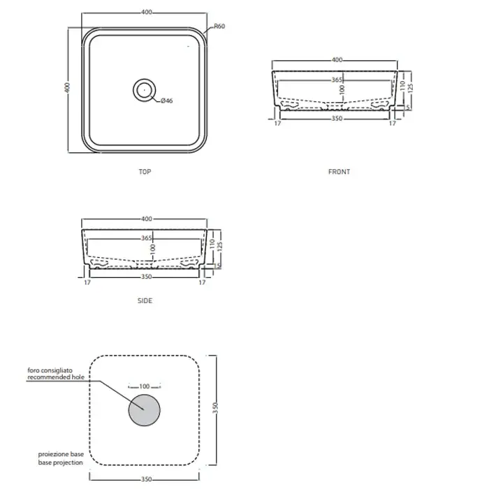 Cielo Shui Comfort Раковина накладная 60x43xh13 см, 1 отв, цвет: белый глянец SHCOLARF