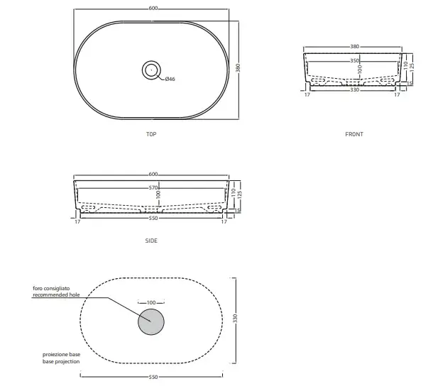 Cielo Shui Comfort Раковина накладная 60х38хh12,5 см, овальная, цвет: глянцевый белый SHCOLAO60