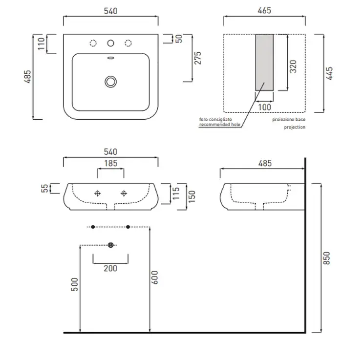 Cielo Shui Раковина 54х48хh15 см, подвесная/накладная, с 1 отв, цвет: глянцевый белый SHLS54
