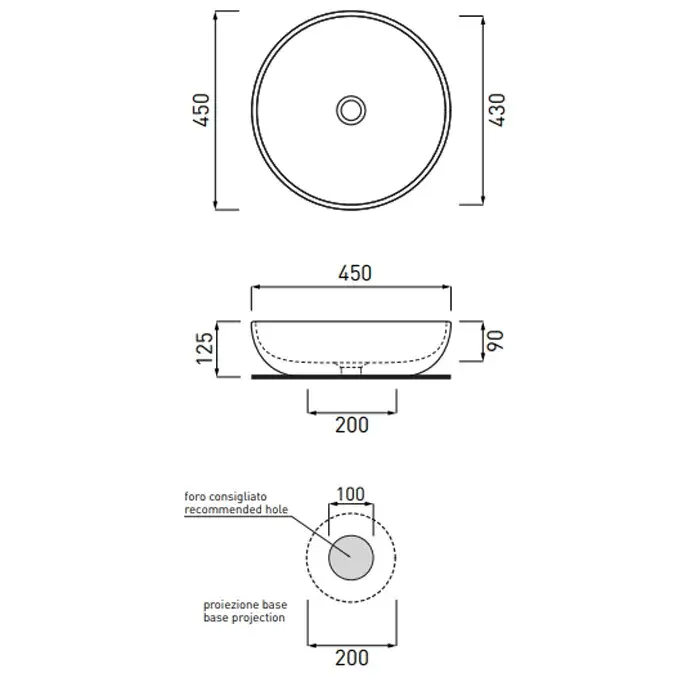 Cielo Shui Раковина накладная 45х12 см, круглая, без перелива, цвет: белый SHBA45
