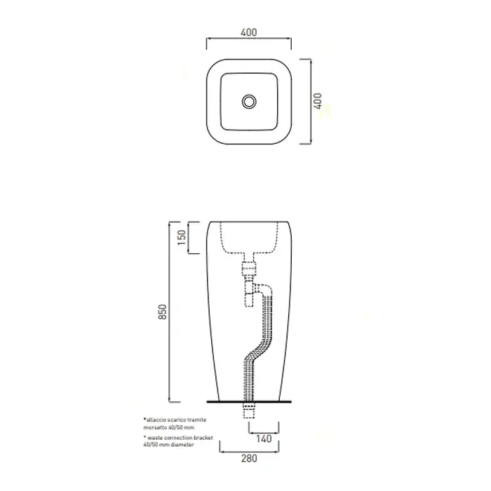 Cielo Shui Раковина напольная 40х40хh85 см, пристенная установка, цвет: глянцевый белый SHFREEP