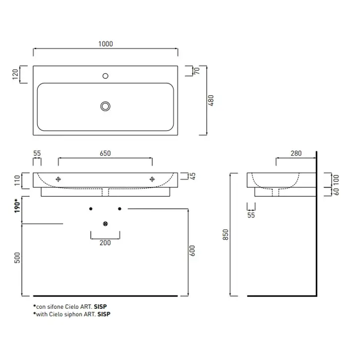 Cielo Smile Раковина подвесная 100х48хh16 см, 1 отв, цвет: глянцевый белый SMLA100