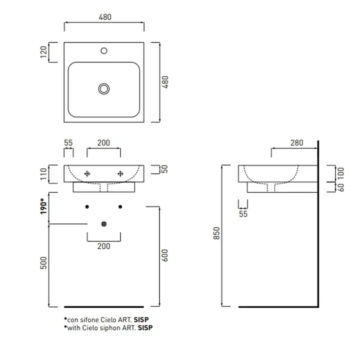 Cielo Smile Раковина подвесная 48х48хh16 см, 1 отв, цвет: глянцевый белый SMLA48