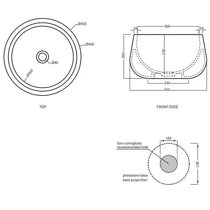 Cielo Tino&Tina Раковина накладная 45xh26 см, круглая, цвет: белый глянец BATA