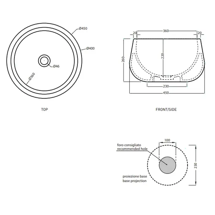 Cielo Tino&Tina Раковина накладная 45xh26 см, круглая, цвет: белый глянец BATA