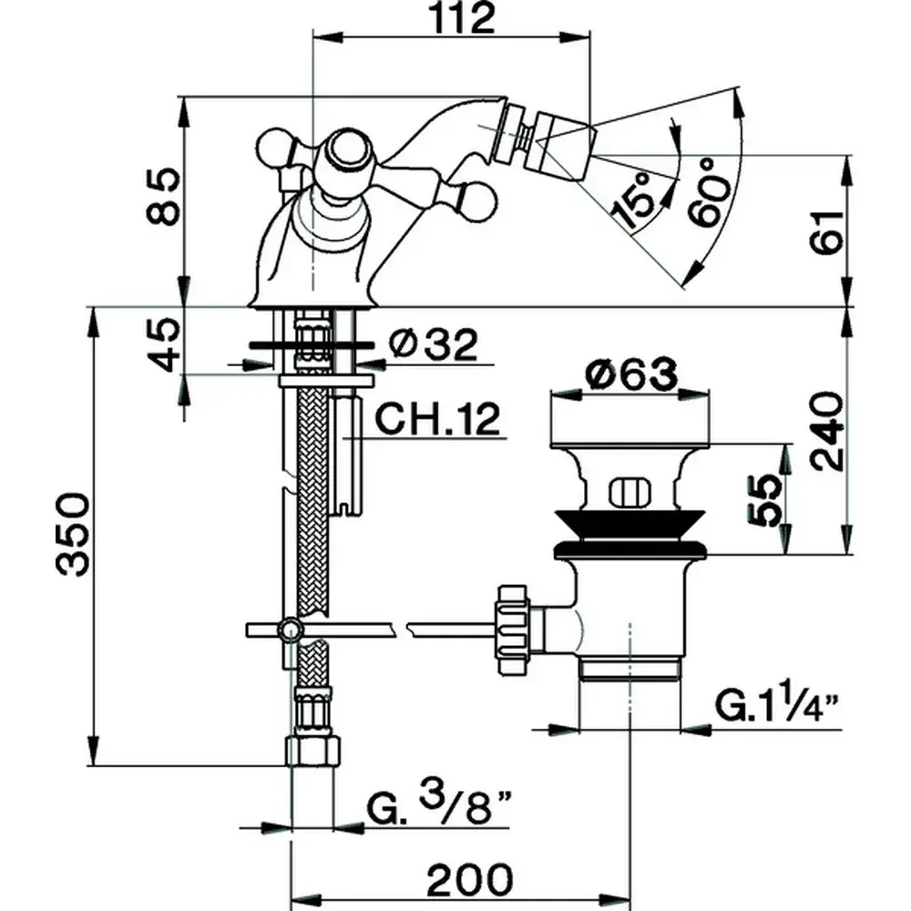 Cisal Arcana America Смеситель для биде на 3 отверстия, с донным клапаном, цвет: Chrome AA00102021