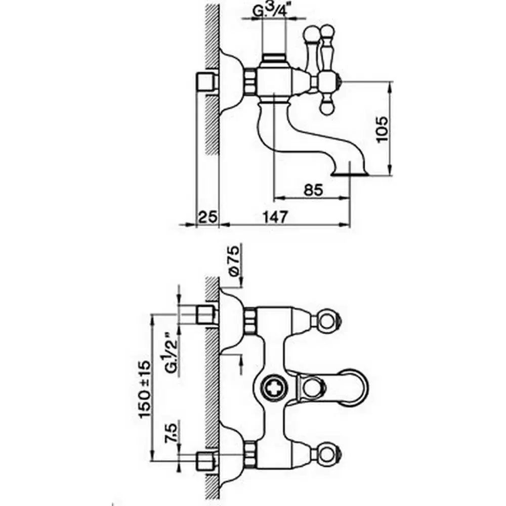 Cisal Arcana America Смеситель настенный для ванны с ручной лейкой, цвет: Antique Bronze AA00012027