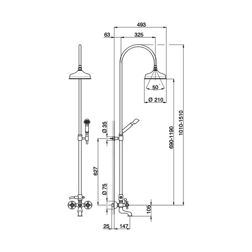 Cisal Arcana Ceramic Настенная душевая стойка: смеситель для ванны/душа, цвет: Chrome AC00415121