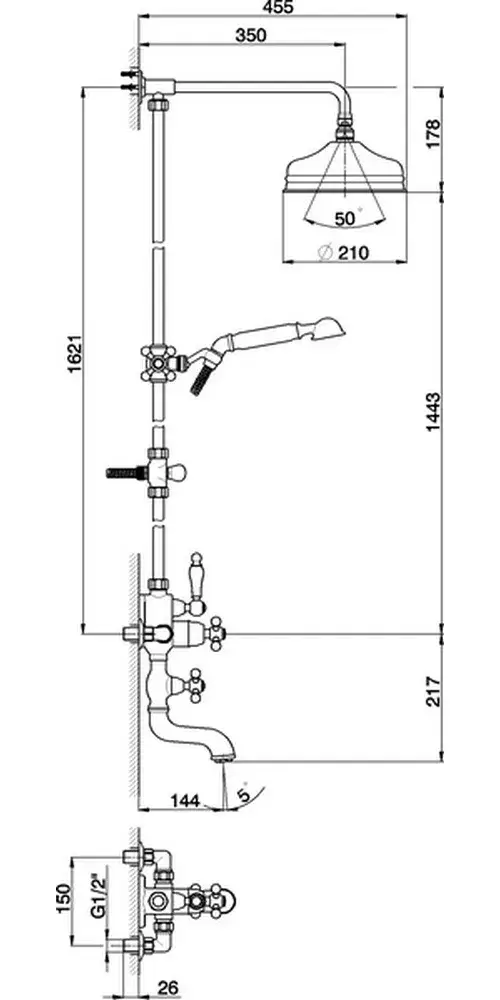 Cisal Arcana Ceramic Душевая стойка с верхним душем 21x161,5h см, цвет: Antique Bronze AC00415127