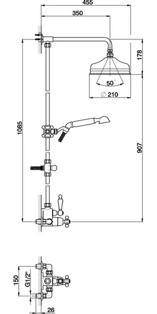 Cisal Arcana Ceramic Душевая стойка с верхним душем 21x161,5h см, цвет: Antique Bronze AC00415127