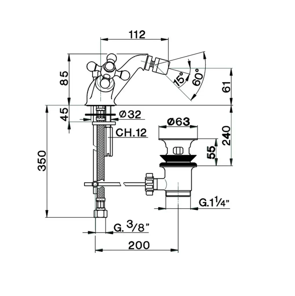 Cisal Arcana Ceramic Смеситель двухвентильный для биде, цвет: Antique Bronze AC00055027