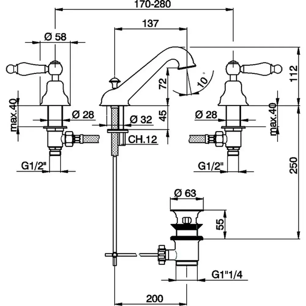 Cisal Arcana Toscana Смеситель для раковины на 3 отверстия, цвет: Chrome TS00102021
