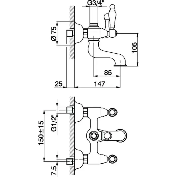 Cisal Arcana Toscana Смеситель настенный для ванны с ручной лейкой, цвет: Chrome TS00012021