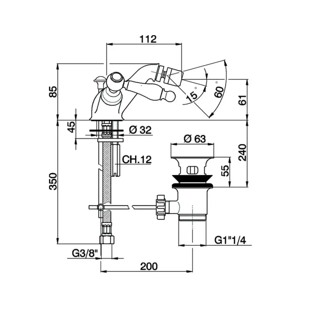 Cisal Arcana Toscana Смеситель двухвентильный для биде, цвет: Antique Bronze TS00055027