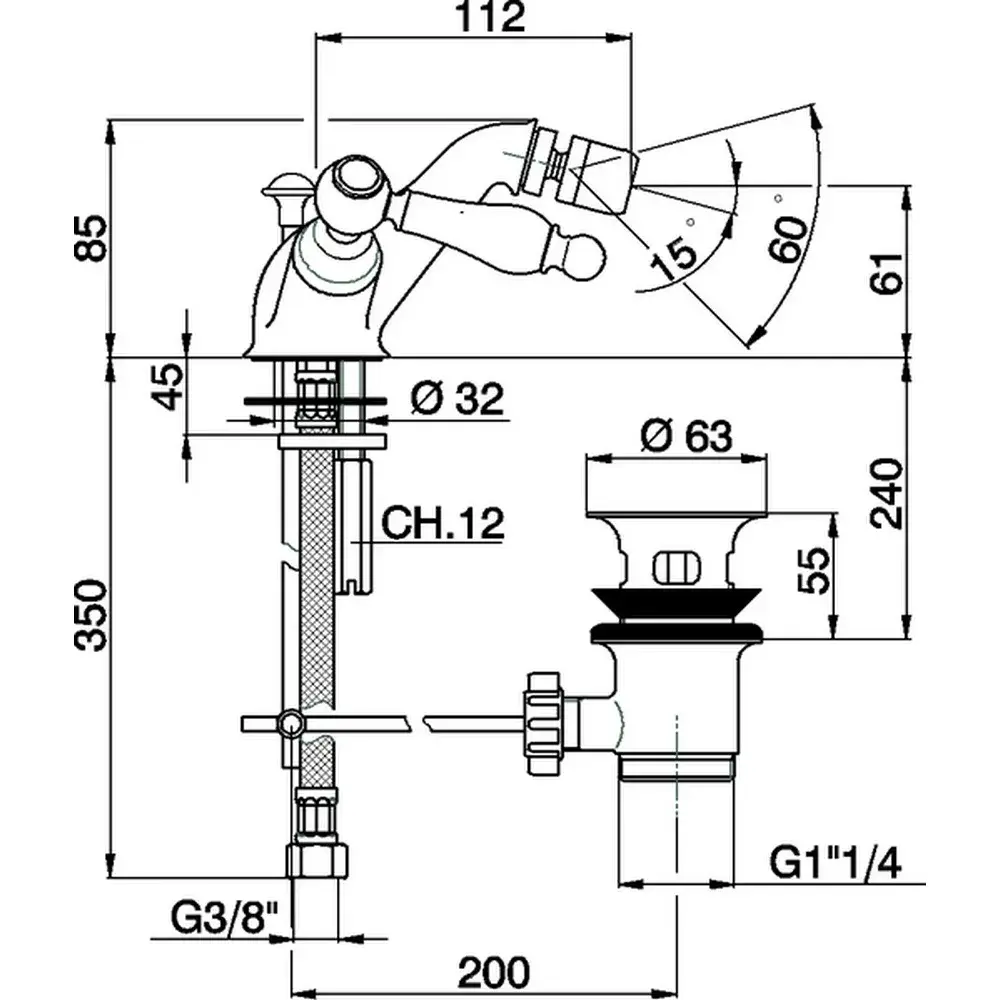 Cisal Arcana Toscana Смеситель двухвентильный для биде, цвет: Chrome TS00055021