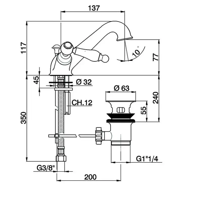 Cisal Arcana Toscana Запорный вентиль на горячую воду, цвет: Chrome TS00031221