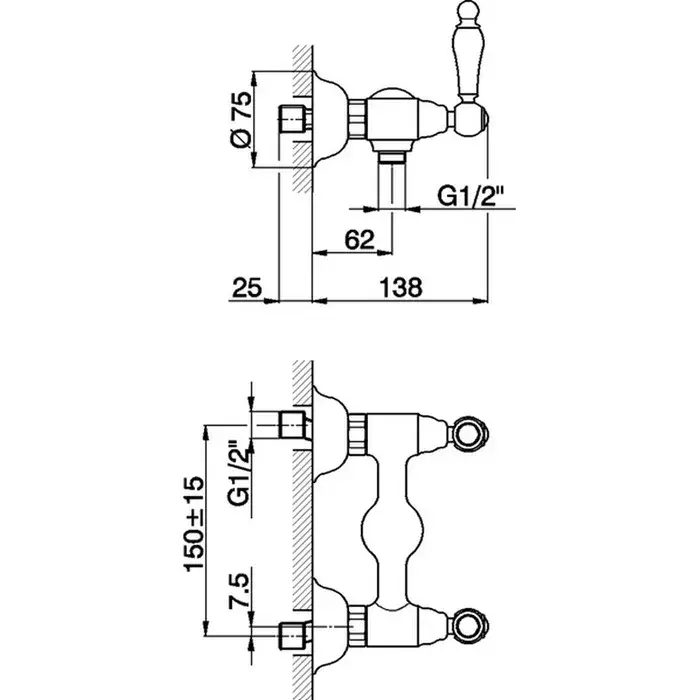 Cisal Arcana Toscana Смеситель двухвентильный настенный для душа, цвет: Chrome TS00044121