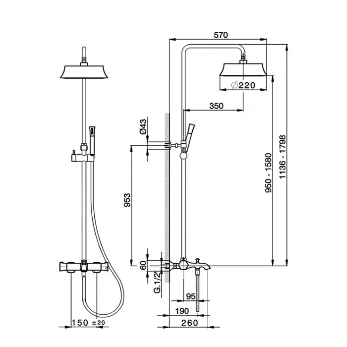 Cisal Cherie Настенная душевая стойка: термостатический смеситель для ванны, цвет: Chrome CEC8301021